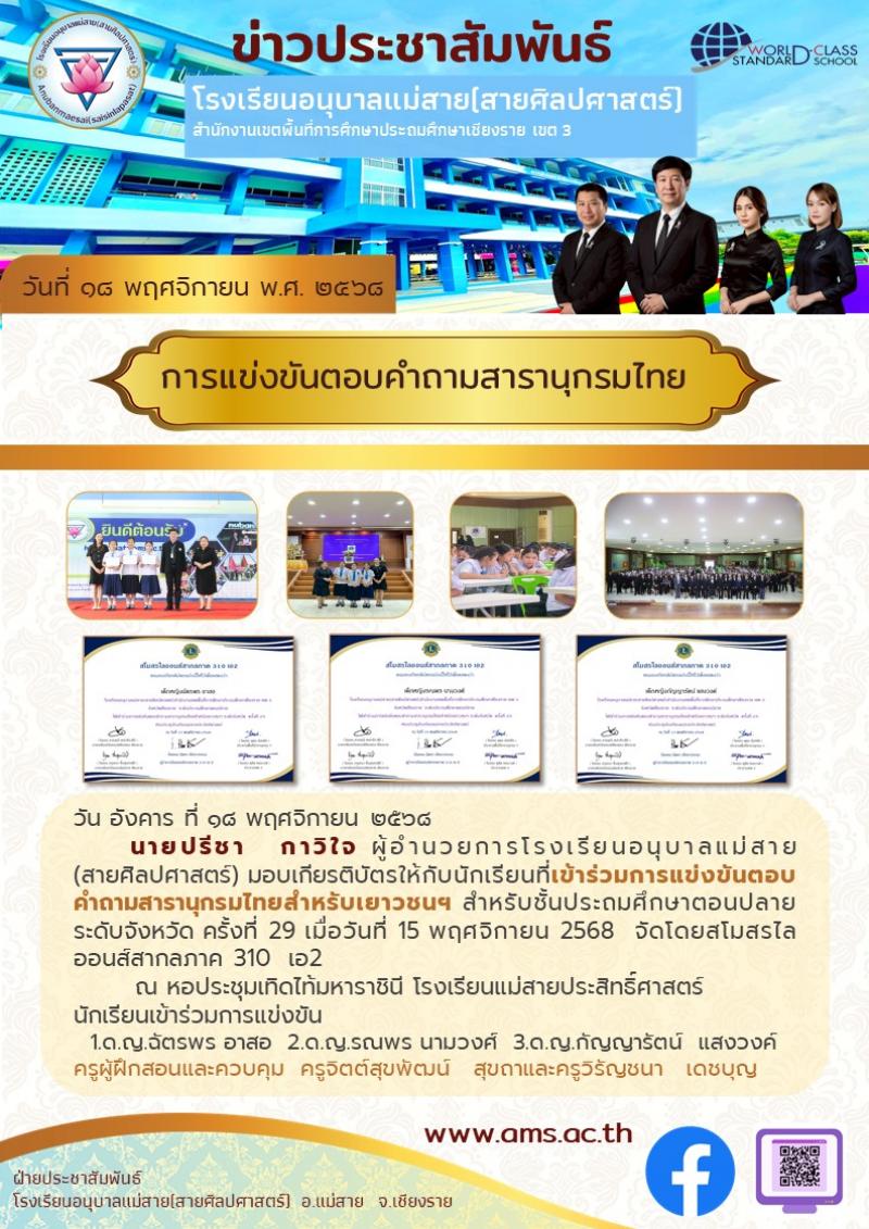 รับรางวัลการแข่งขันเอแม็ทและครอสเวิร์ด 13.11.2568