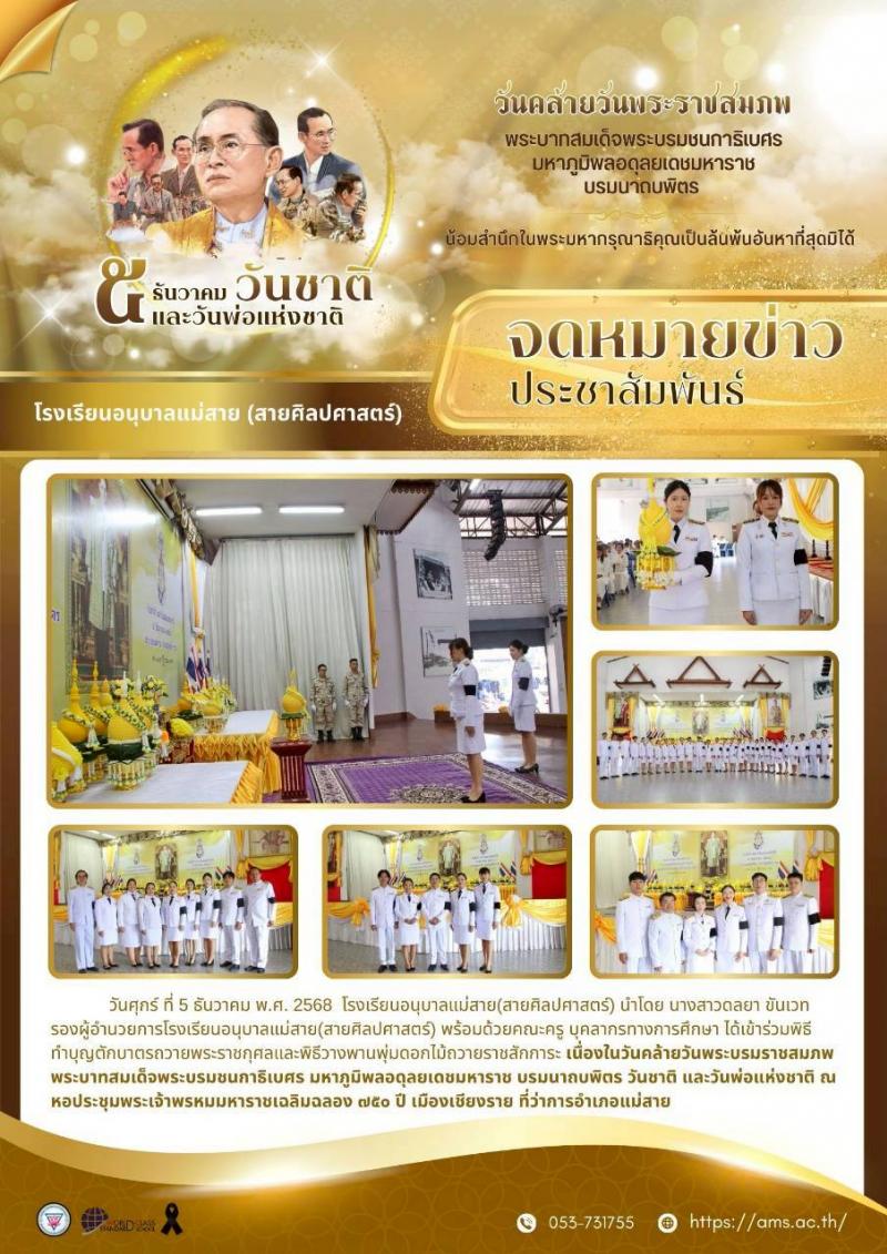 ร่วมกิจกรรมเนื่องในวันคล้ายวันพระบรมราชสมภพพระบาทสมเด็จพระบรมชนกาธิเบศร มหาภูมิพลอดุลยเดชมหาราช บรมนาถบพิตร วันชาติ และวันพ่อแห่งชาติ 05.12.2568