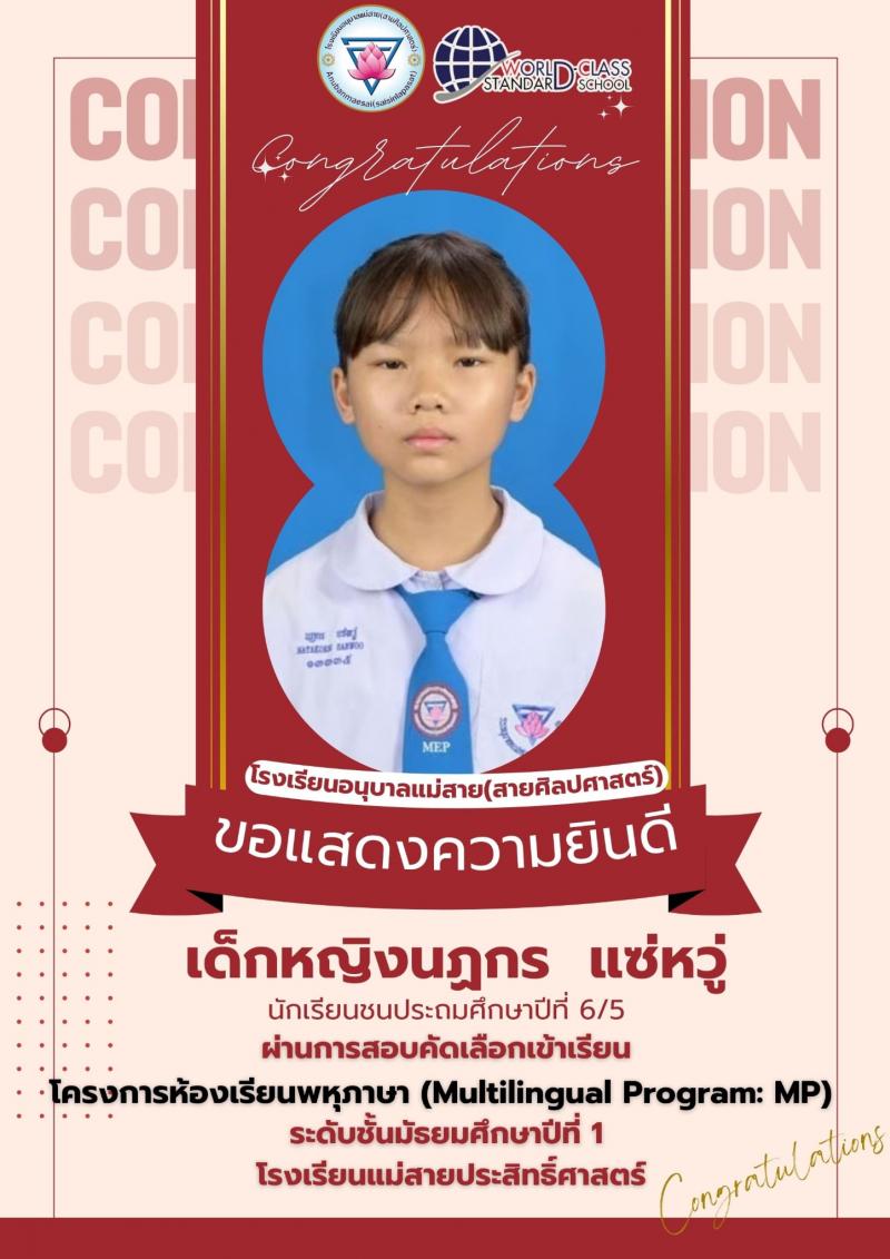 โรงเรียนอนุบาลแม่สาย(สายศิลปศาสตร์)ขอแสดงความยินดีกับนักเรียนที่ผ..
