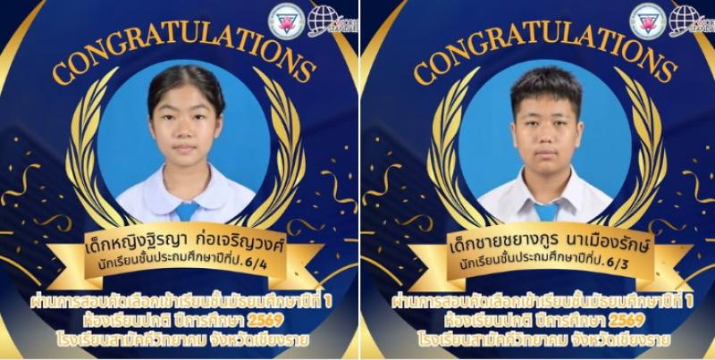 ขอแสดงความยินดีกับนักเรียน ผ่านการสอบคัดเลือก เข้าเรียนชั้นมัธยมศ..